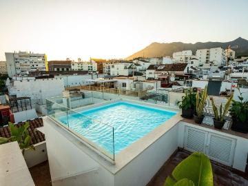 Descubra una joya única que combina el encanto tradicional con el confort moderno en esta centrica casa adosada, recientemente renovada y situada en pleno corazón del casco antiguo. Esta propiedad invita a disfrutar de una experiencia de vida vibrante y exclusiva, perfecta para quienes buscan el equilibrio entre historia, modernidad y calidad de vida en Marbella. La vivienda cuenta con 108 m² construidos distribuidos en dos amplios dormitorios y dos baños completos, ofreciendo espacios luminosos y funcionales para el día a día. El salón y el comedor, cuidadosamente decorados y totalmente amueblados, se abren a una terraza privada de 30 m², ideal para disfrutar de reuniones al aire libre o momentos de relax con vistas panorámicas a la ciudad, la montaña y la piscina privada. La cocina está completamente equipada y lista para satisfacer las necesidades de los más exigentes. Entre sus características destacan el aire acondicionado, doble acristalamiento y una distribución pensada para el