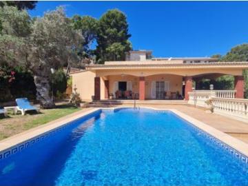 Esta espaciosa villa de 250 m2 construidos sobre una parcela llana de 1.278 m2 con una distribución inmejorable para familias es ideal para vivir todo el año o como residencia vacacional. Construido todo en una sola planta sin escaleras disfrutando de una generosa piscina, una zona ajardinada y un gran sótano debajo de la villa con un garaje para 2 coches. La propiedad consta de 5 dormitorios dobles, 4 baños ( 3 en suite ), una cocina moderna con mesa de desayuno, un gran salón con chimenea, un comedor y puertas que dan a la terraza cubierta con vistas a la piscina y jardín.Otras características de esta casa familiar ideal incluyen; aire acondicionado frío-calor, calefacción central, doble acristalamiento, lavadero independiente, despensa, una zona de barbacoa, aparcamiento exterior para 4 coches y un trastero en el garaje para 2 coches.Si usted está buscando una gran propiedad a poca distancia de todos los servicios y la playa, entonces póngase en contacto con nosotros para concer